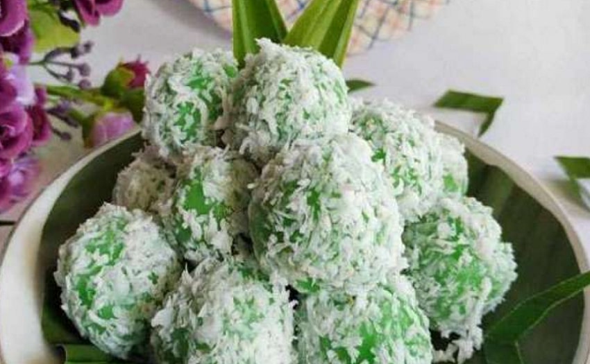 – 500 gr tepung maizena – 1 mangkuk potongan gula merah – 1 mangkuk kelapa agak muda, parut dan kukus – 2 tetes pasta pandan – air secukupnya